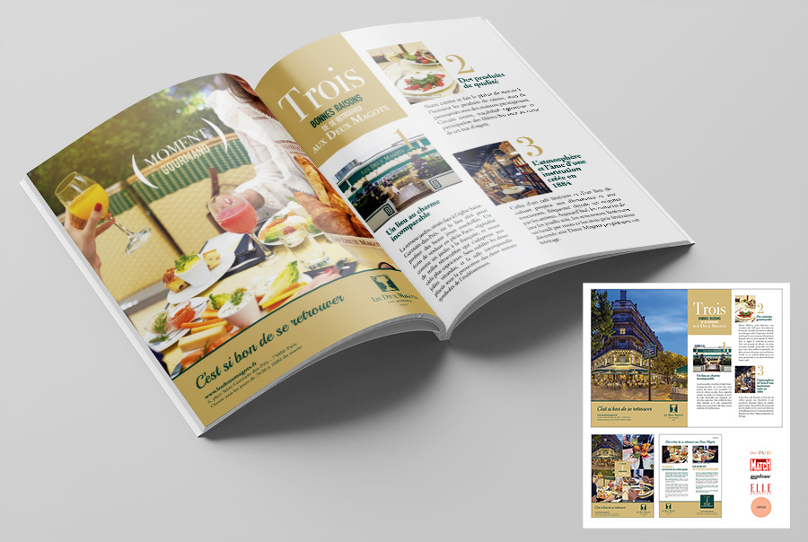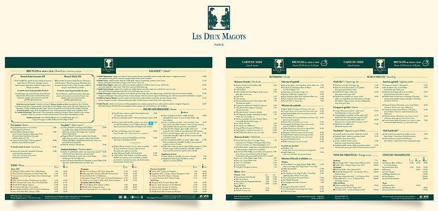 Merci aux Deux Magots, qui m’ont fait confiance pour la création la réalisation de leurs cartes de visites, de leurs campagnes presse et affichage urbain, le design de leurs menus et d’une manière plus générale sur la majorité de leurs supports imprimés.